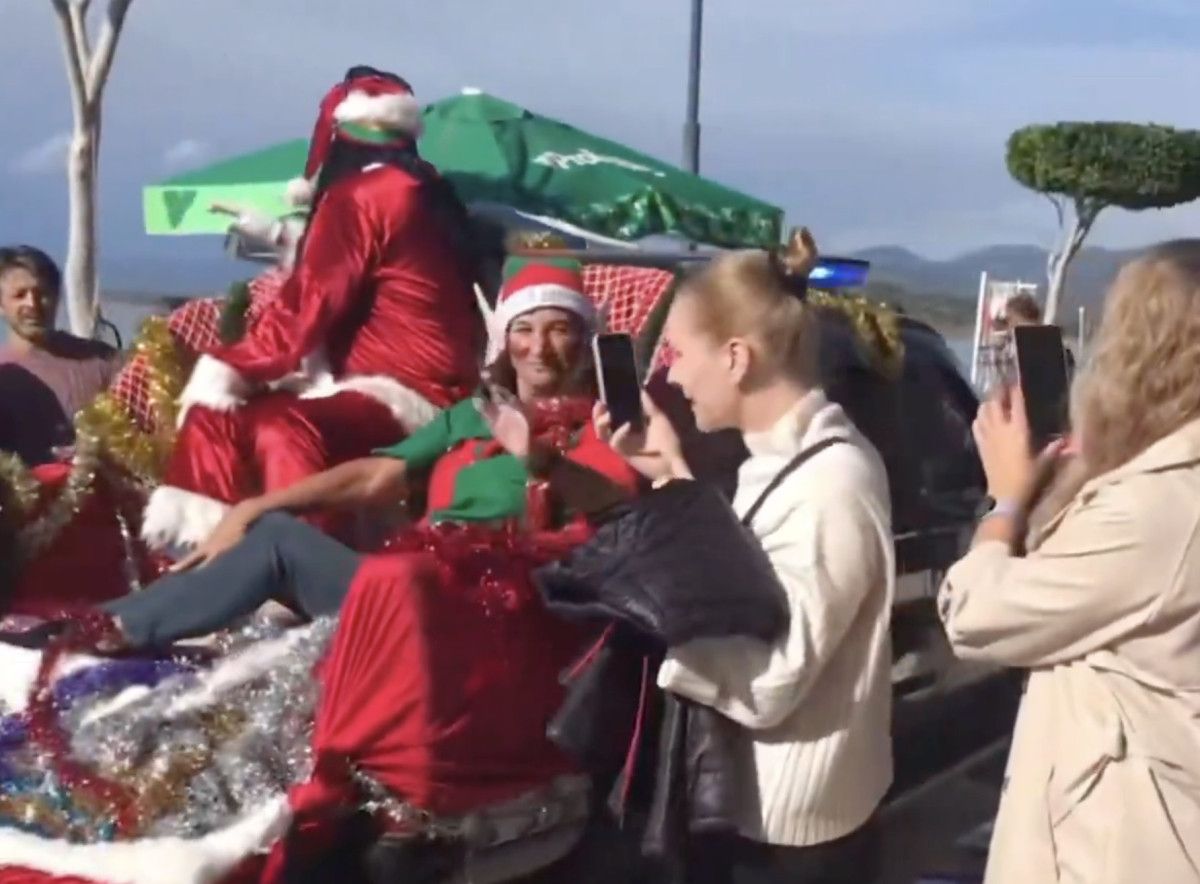 Etkinliğe ait görüntülerde kırmızı ‘Noel Baba’ kostümleri giymiş şahısların yeşil ve kırmızı süslemelerle donatılmış bir Fethiye Belediyesi’ne ait zabıta aracı görüldü.