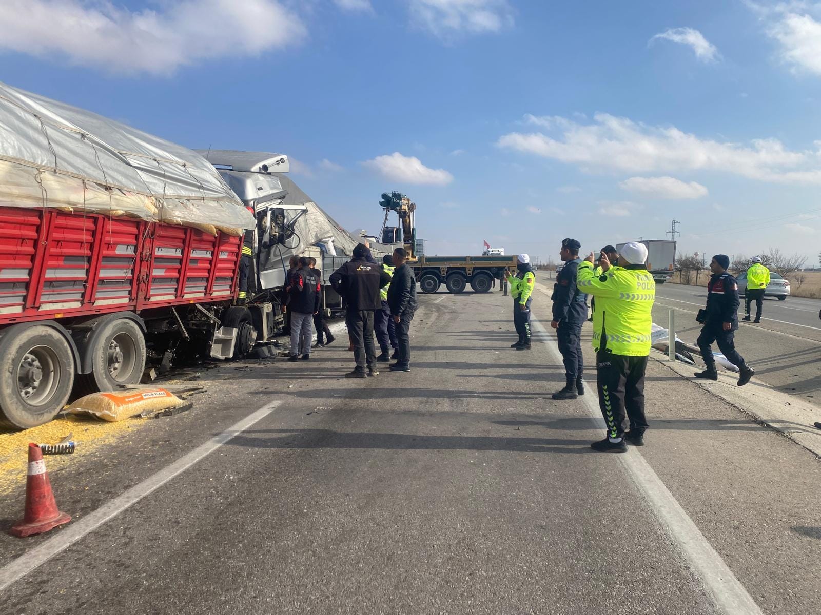 TIR’ın kabininde sıkışan şoförün cansız bedeninin çıkarılması için vinçle çalışma başlatıldı. Ekiplerin, sürücülerin kimliklerini belirlemek için çalışması sürüyor.