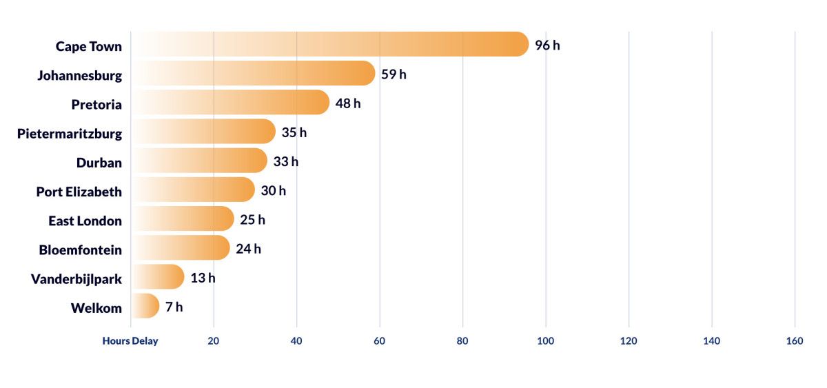 Güney Afrika’nın başkenti Cape Town Afrika kıtasında 96 saatle trafikte en fazla zaman kaybedilen şehir olarak yer alıyor.