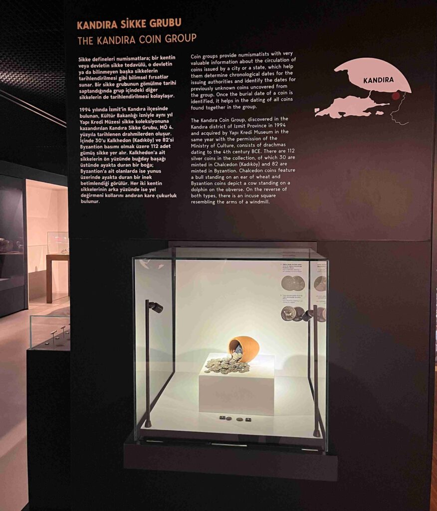 Sergi alanında izleyicinin oluşturduğu ilk etkileşimlerden biri, sikkelerle başlıyor. Lidyalılar ile başlayan para tarihi, Pers İmparatorluğu’ndan Osmanlı’ya ve sonrasında Türkiye Cumhuriyeti’ne uzanan bir zaman dilimini açığa çıkarıyor. Bu küçük metal parçalar, büyük anlatılar taşıyor: iktidar, dolaşım, değer ve temsili içeriyor.