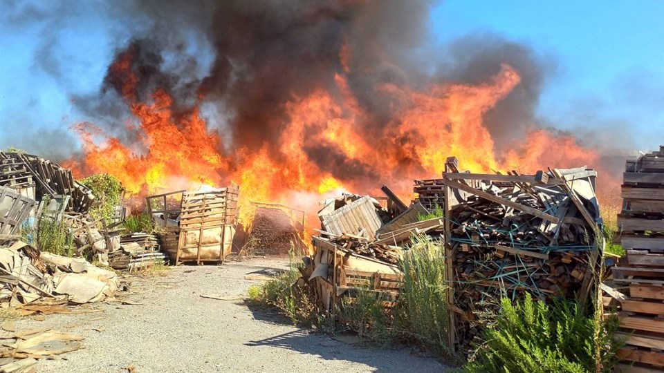 Manisa’nın Yunusemre ilçesi Muradiye Mahallesi’ndeki fabrikanın eski paletlerin depolandığı alanında, henüz belirlenemeyen nedenle yangın çıktı.